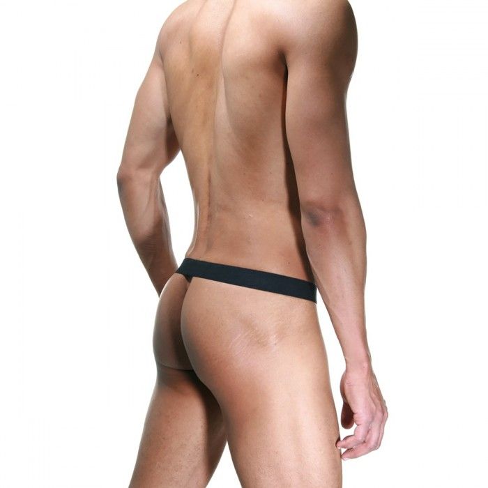 Черные очень откровенные трусы, на широком поясе, из ремешков, с полностью открытыми ягодицами и гениталиями.