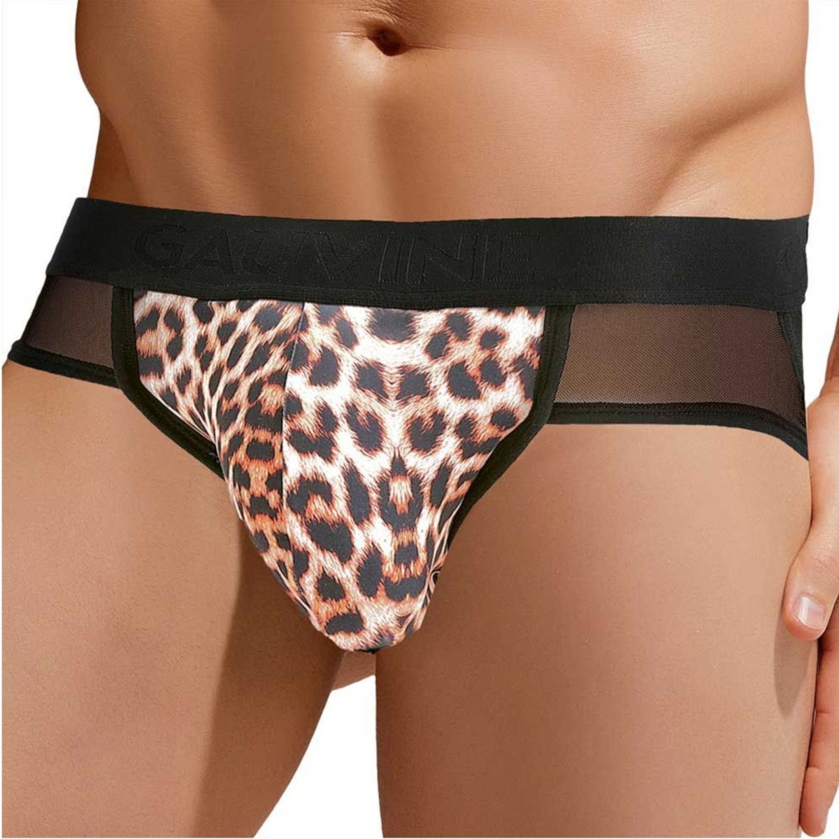Сексуальные мужские трусы-джоки с леопардовой вставкой по центру.