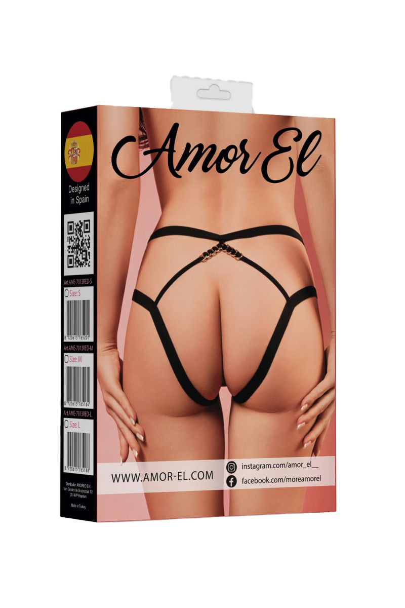 Кружевные трусики с доступом и завышенной посадкой. Трусики имеют сексуальный вырез на передней части и резинки с декоративной фурнитурой в виде колец сзади.