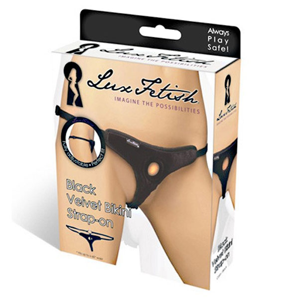 Трусики-стринги с регулирующимся размером с декоративным кольцом сзади. Мягкая часть из бархатного материала внутри с поролоном и вшитым внутрь кольцом для крепления фаллоса. Размер: 13-19 см.