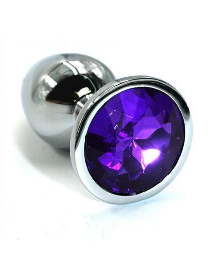 Анальная пробка из алюминия размер S. Страз в основании круглой формы, выполнен из стекла темно-фиолетового цвета. Упакована в вельветовый мешочек для хранения. Вес - 52 гр.