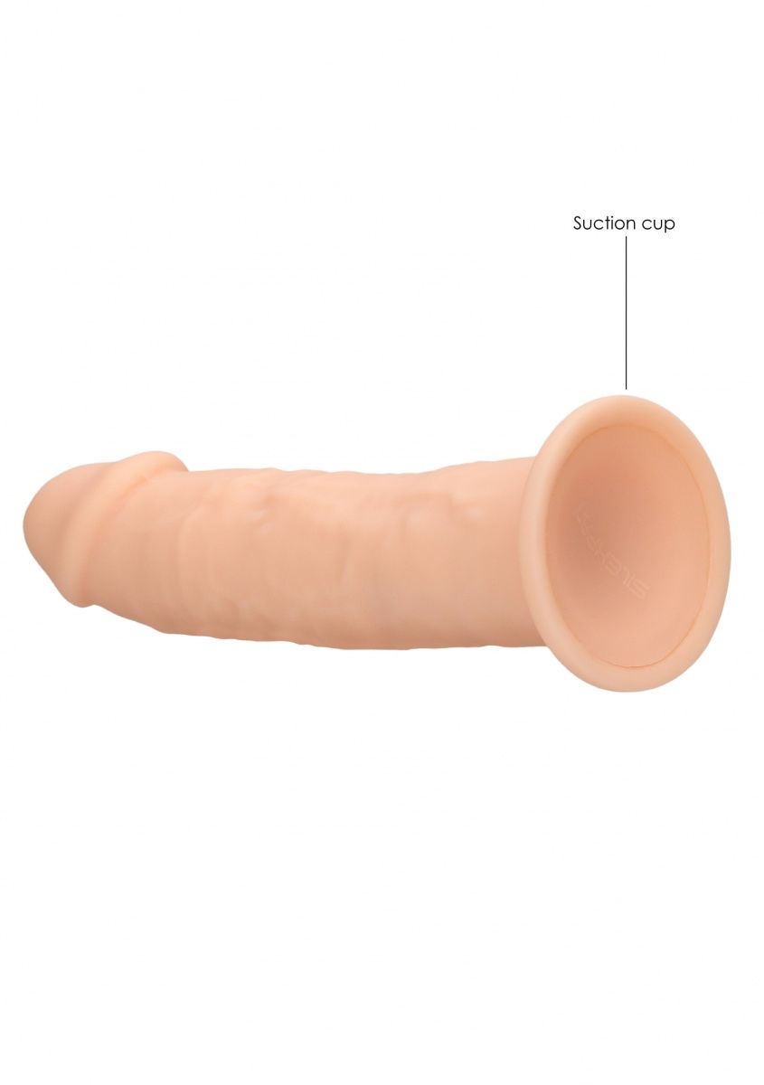 Silicone Dildo Without Balls - высококачественный реалистичный фаллоимитатор с ярко выраженной головкой и рельефным покрытым венками телом. Имитация имеет двойную структуру. Высшего качества силикон, обеспечивающий ощущение натуральной кожи снаружи, и революционный наполнитель полости внутри обеспечивают более высокий коэффициент гибкости, позволяющий сгибать реалистик и придавать ему любую форму по вашему желанию, большую плотность и сверхреалистичный вид. Сверхпрочная присоска позволяет надежно закрепить игрушку на любой гладкой поверхности или использовать в качестве страпона. Фаллоимитатор имеет термореактивные характеристики. При нагреве (максимум 30 секунд в микроволновке или 2 минуты в кипящей воде) игрушка становится мягче и податливее. При охлаждении в холодильнике она станет тверже.
