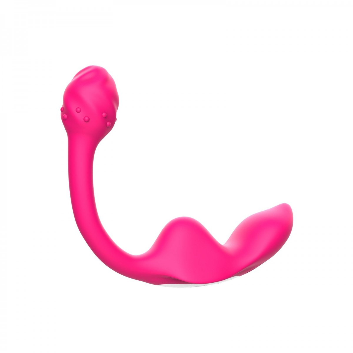 Розовый многофункциональный стимулятор для женщин. Имеет форму лодочки с бугорком посередине и отростком-шишечкой. Может вкладываться в трусики (и при этом отросток вводится в анус), может использоваться для одновременной стимуляции точки G и клитора. Управляется при помощи пульта ДУ, 7 режимов вибрации.