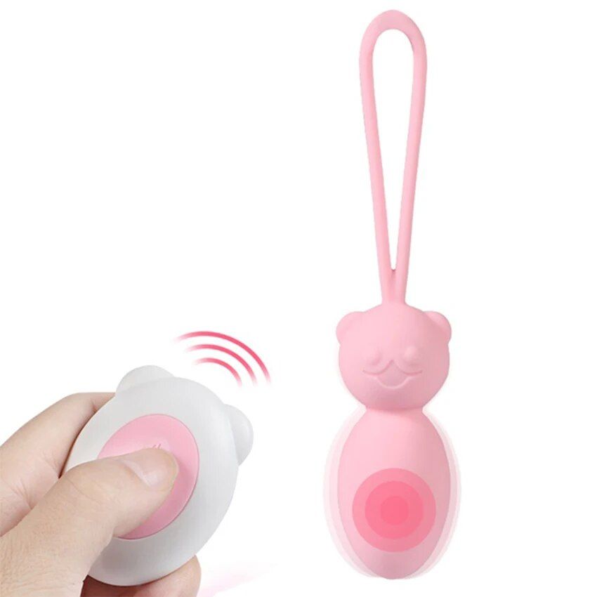Розовые вагинальные шарики с петлёй и пультом ДУ. Имеют 9 режимов вибрации и 3 режима мощности. Удобный пульт дистанционного управления.