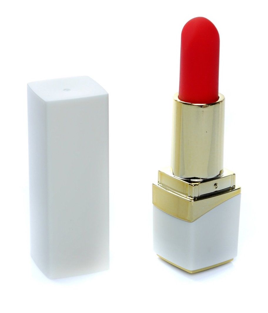 Белый мини-вибратор в форме помады. Имеет 10 режимов вибрации. Зарядка осуществляется с помощью USB-магнит кабеля.